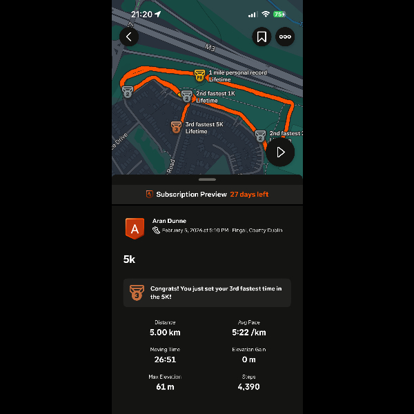 Tuesday 3rd Feb 3 days in, 10km done feeling good. Hoping to lower my times in the 5k aswell. ShareThank you to my Sponsors