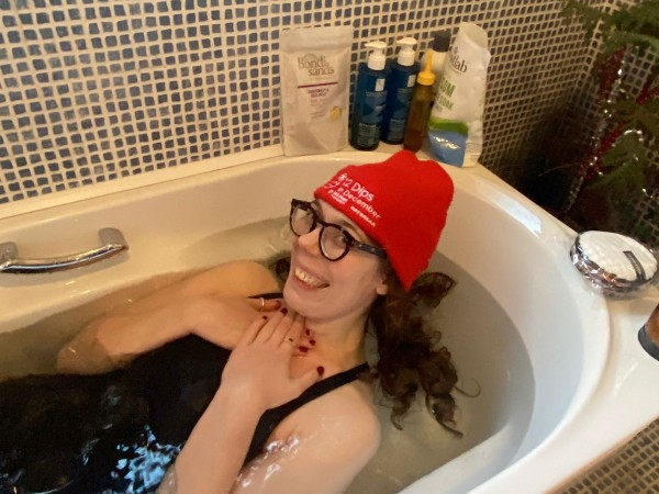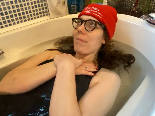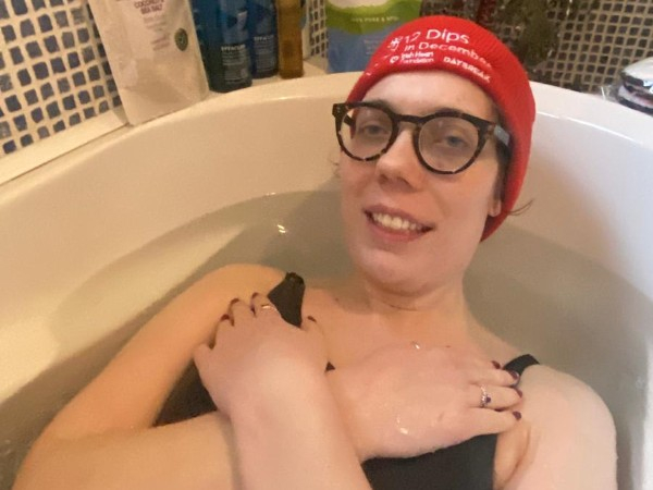 Thursday 18th Dec For our one group dip we had to improvise with an ice bath at home! Cold, but nice to have radiators so close by! Share