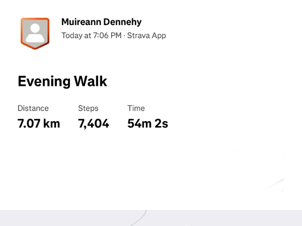 Well done Muireann, sending you lots of positive energy on your walks