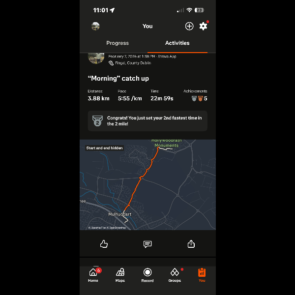 Monday 9th Feb Shorter runs towards the end of the week around 4km each just to finish off. Share